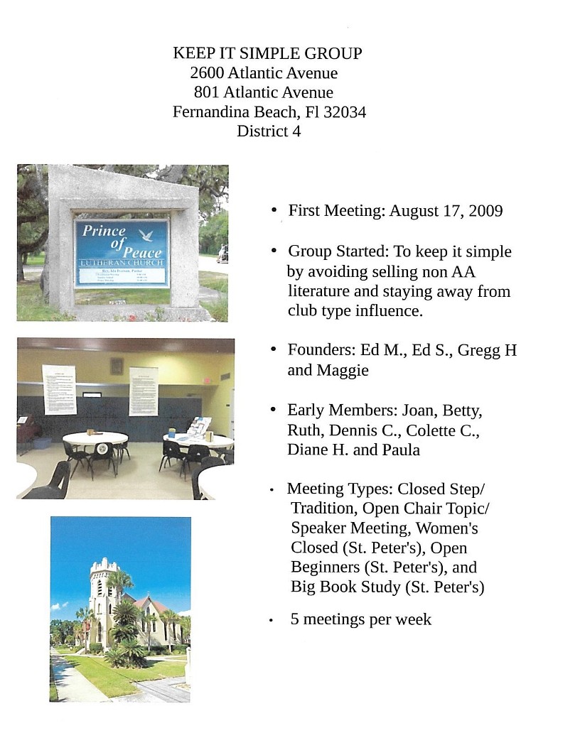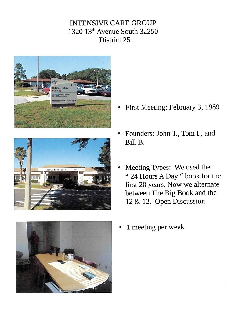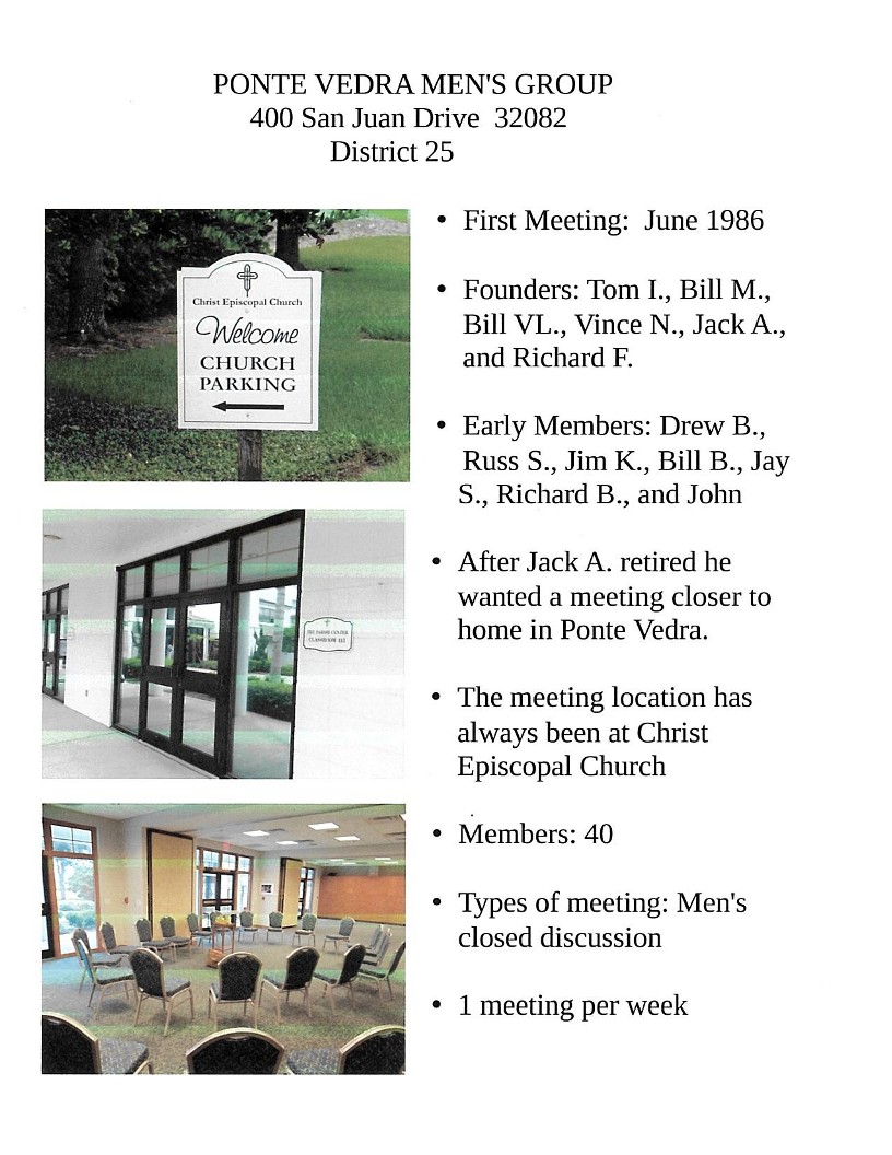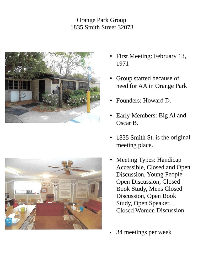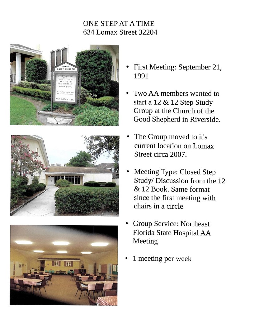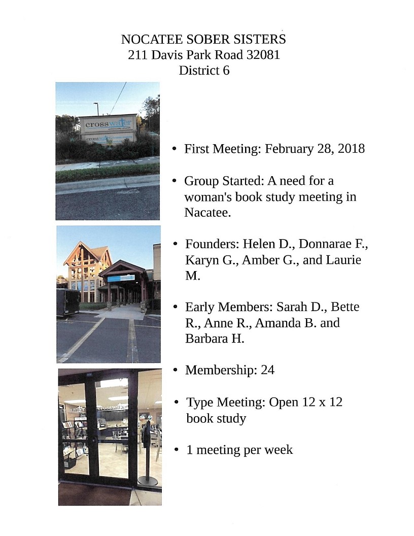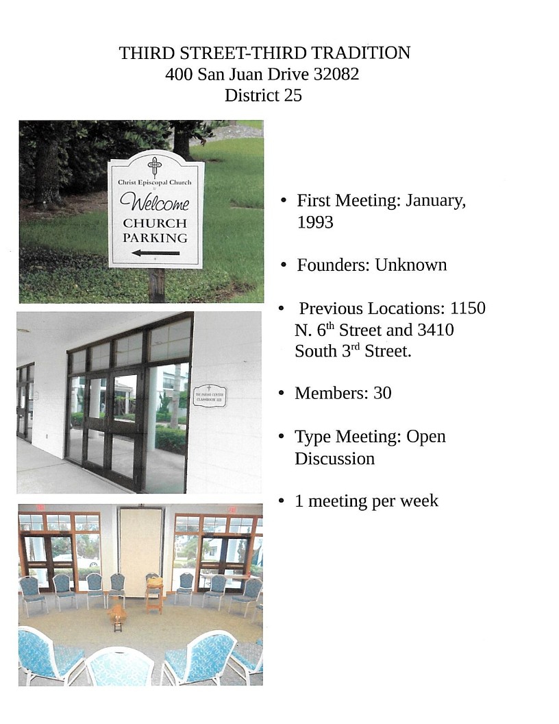 Northeast Florida Intergroup Services, Inc.’s primary purpose is to assist the A.A. Groups in Jacksonville and the surrounding areas in carrying the message of Alcoholics Anonymous to those who still suffer from alcoholism. The Northeast Florida Intergroup Services, Inc. is responsible to the Member Groups from the eight service districts (1, 2, 3, 4, 6, 24, 25, and 30) deriving its legitimate authority from there. In all its activities, policies, and proceedings, Northeast Florida Intergroup Services, Inc. shall observe the practice and spirit of A.A.’s Twelve Traditions and Twelve Concepts for World Service, as well as its Three Legacies of Recovery, Unity, and Service.