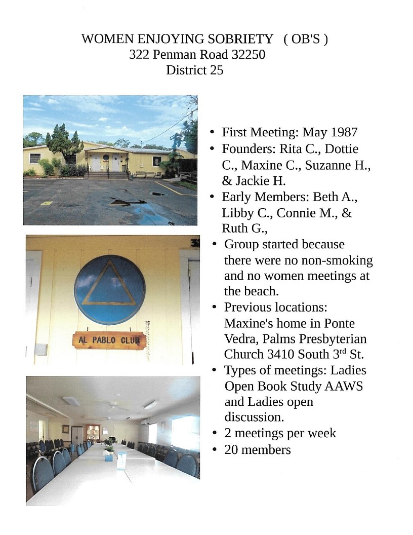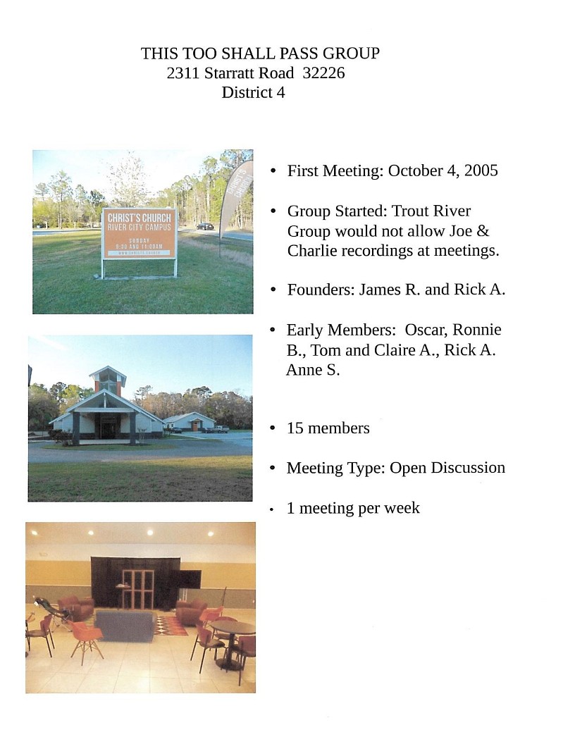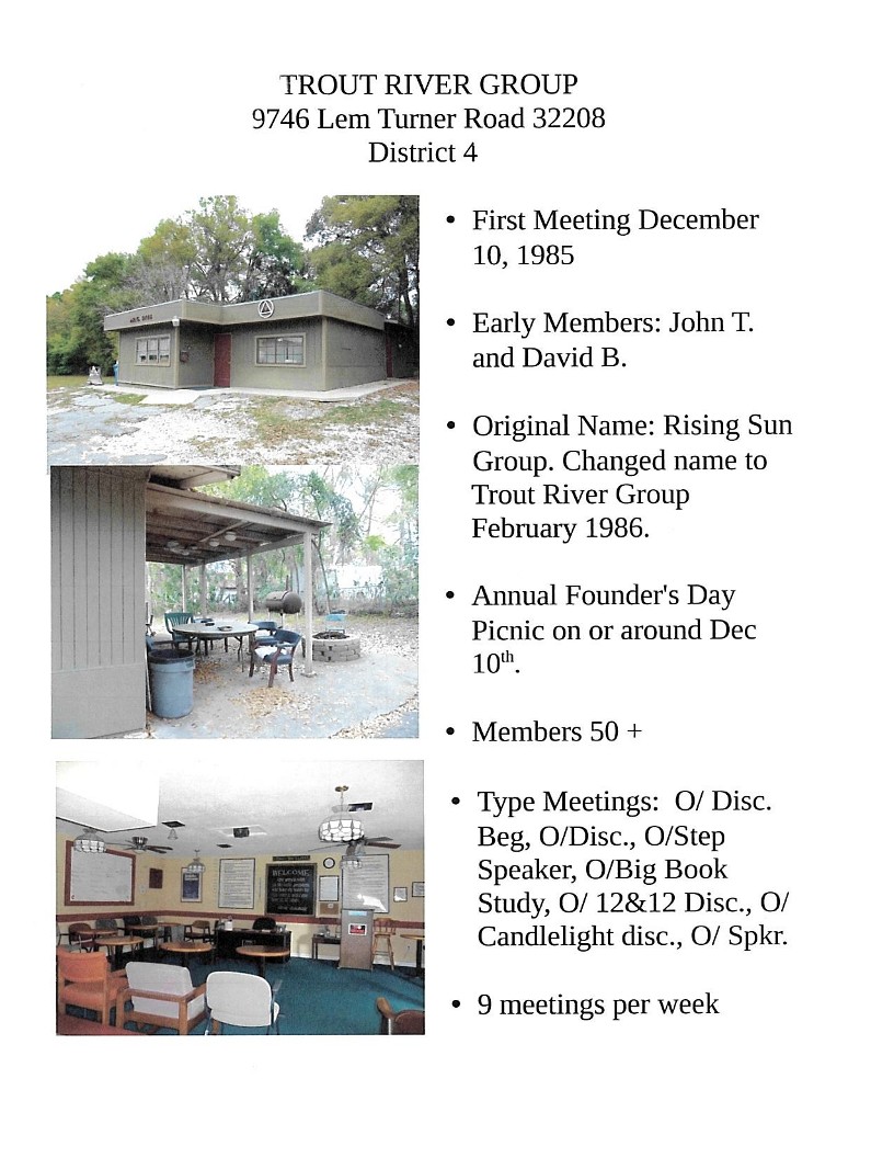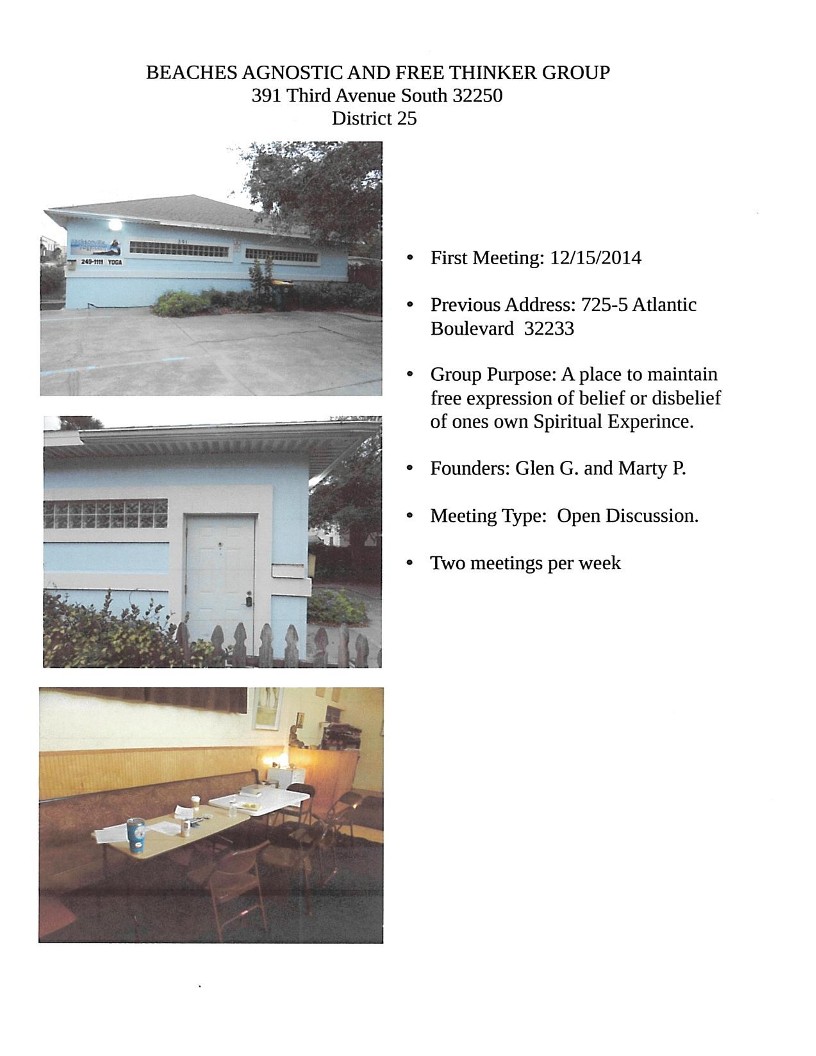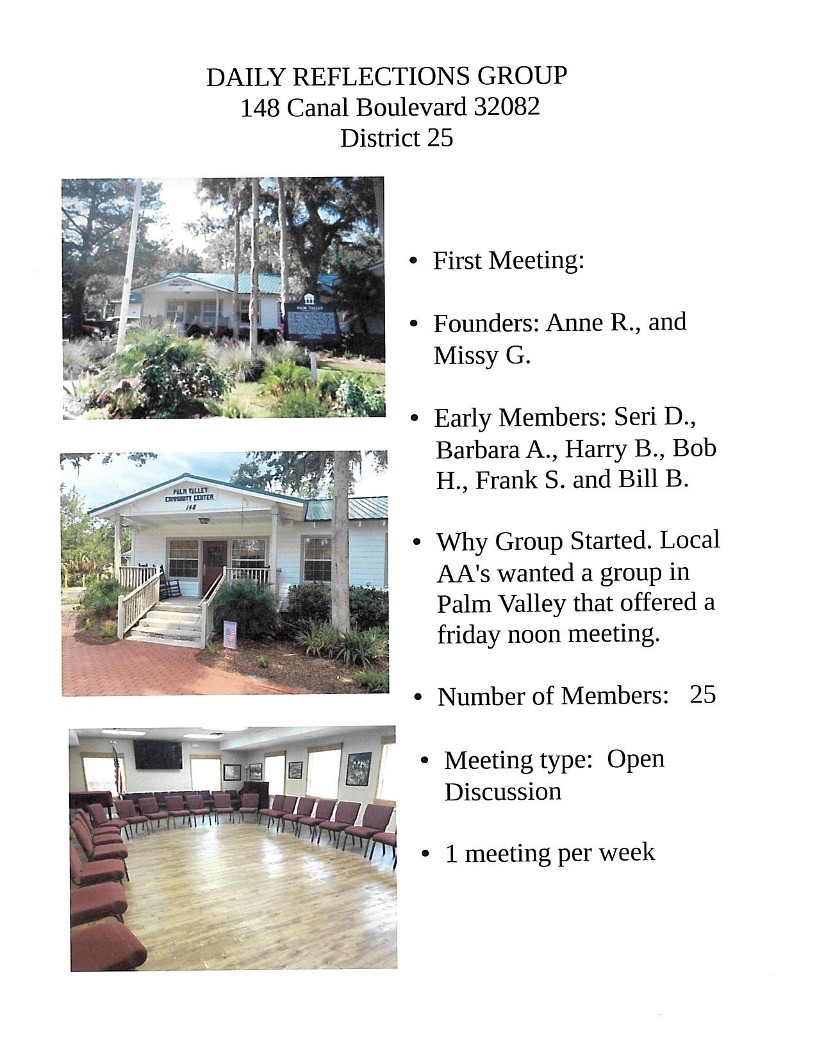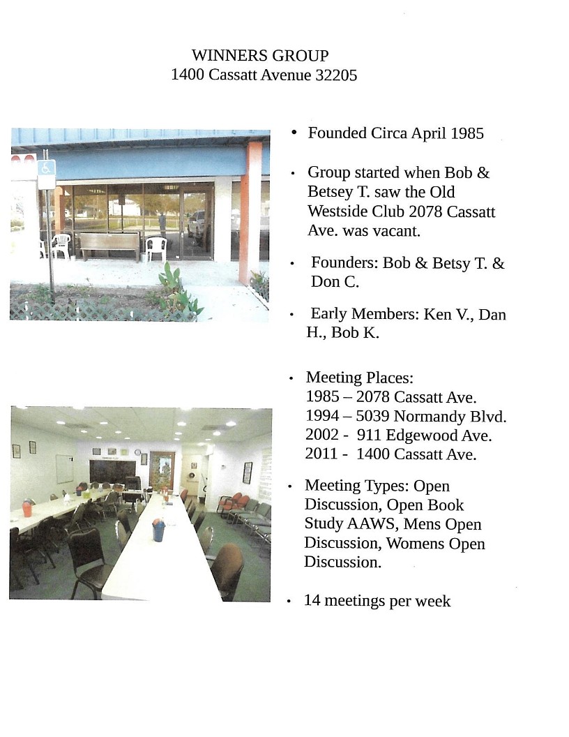 Northeast Florida Intergroup Services, Inc.’s primary purpose is to assist the A.A. Groups in Jacksonville and the surrounding areas in carrying the message of Alcoholics Anonymous to those who still suffer from alcoholism. The Northeast Florida Intergroup Services, Inc. is responsible to the Member Groups from the eight service districts (1, 2, 3, 4, 6, 24, 25, and 30) deriving its legitimate authority from there. In all its activities, policies, and proceedings, Northeast Florida Intergroup Services, Inc. shall observe the practice and spirit of A.A.’s Twelve Traditions and Twelve Concepts for World Service, as well as its Three Legacies of Recovery, Unity, and Service.